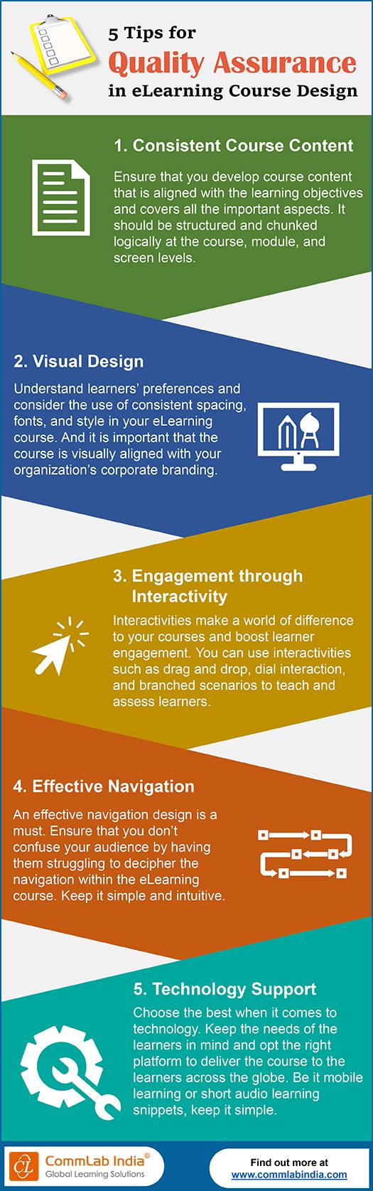 - CommLab India 5 Tips for Quality Assurance in eLearning Design, Infographic, Pinterest